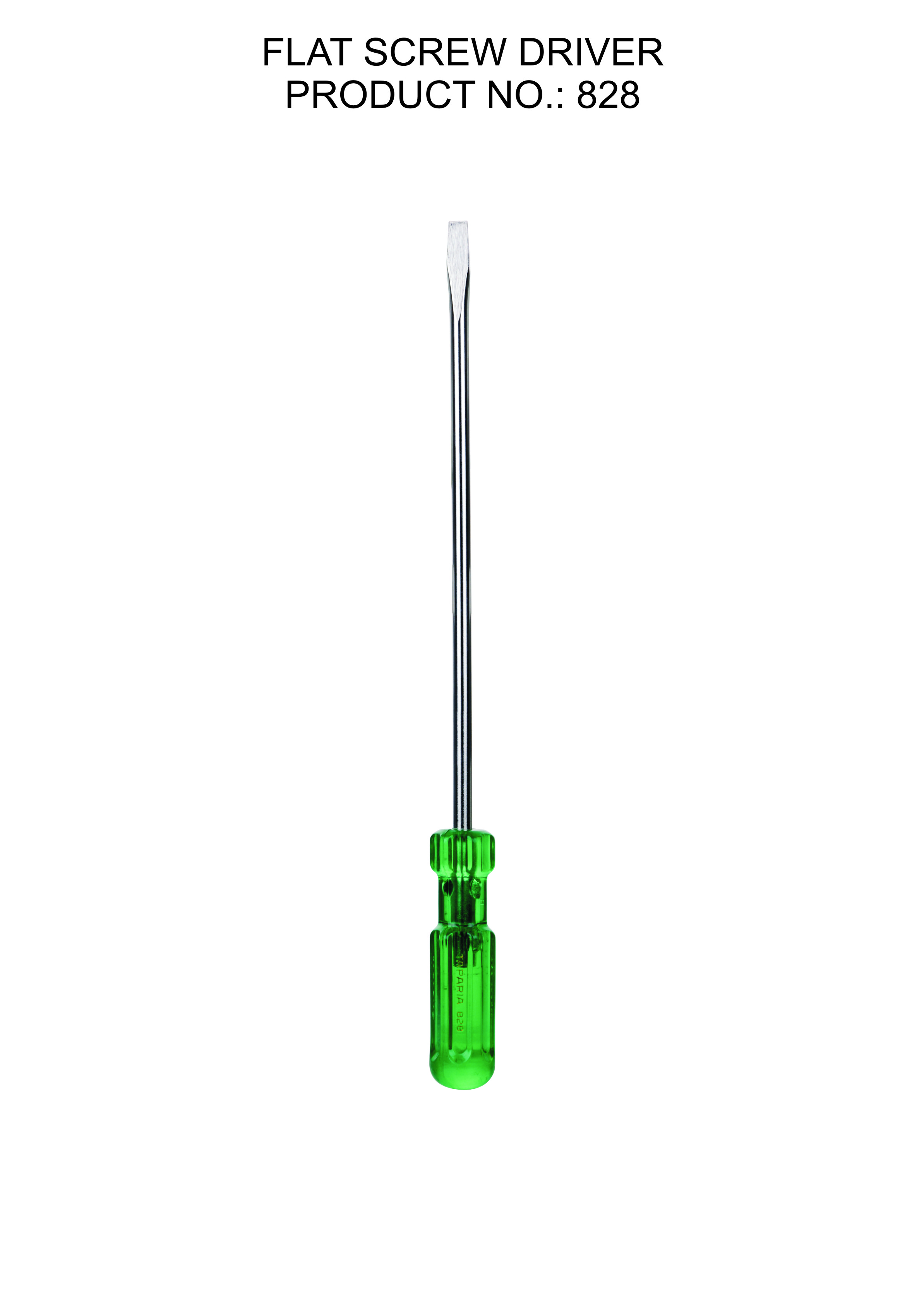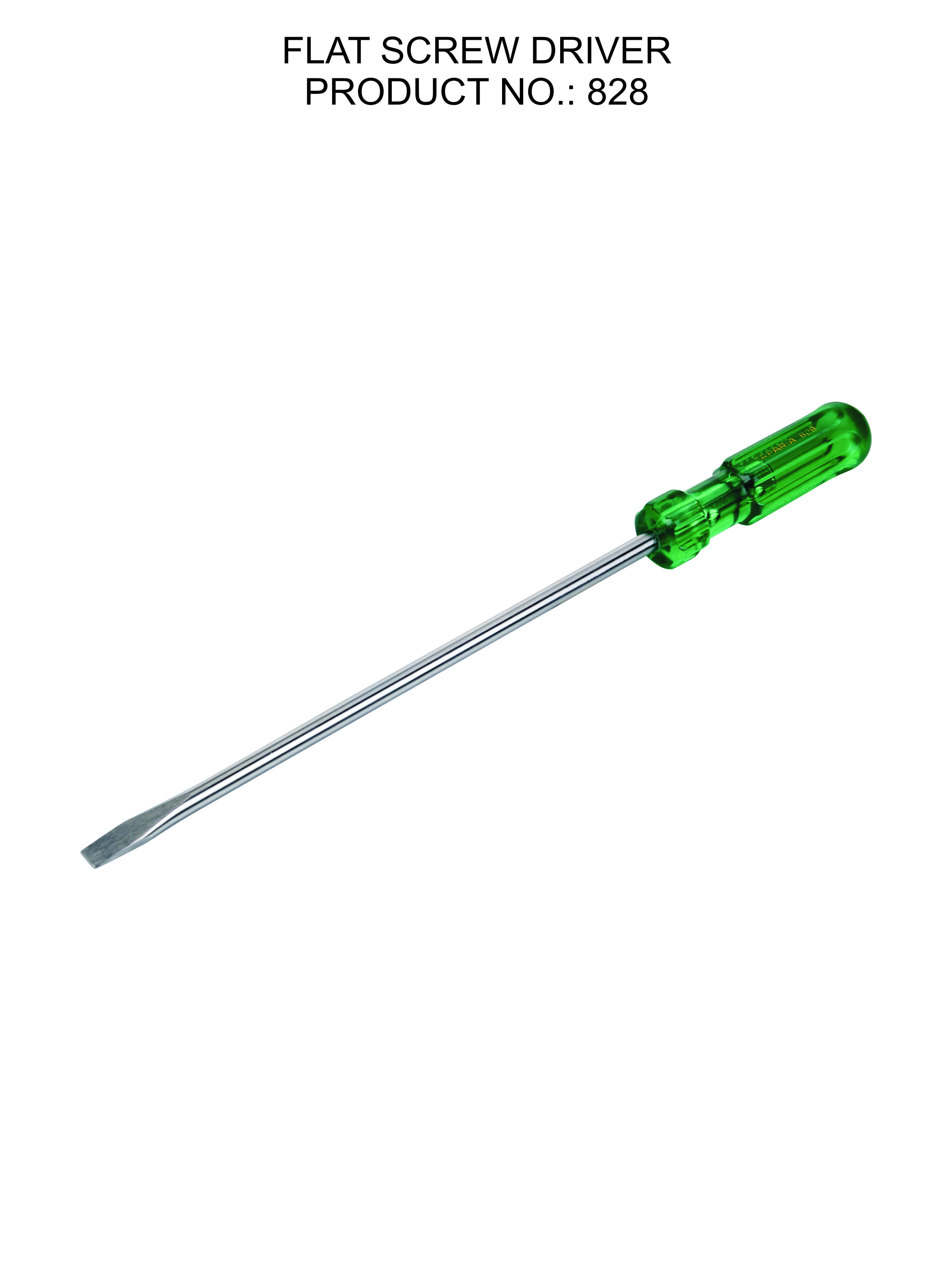 The Taparia 828 Flat Screwdriver (250 mm) is a heavy-duty, long-reach tool designed for maximum torque and access in industrial and electrical environments. With its wide 8 mm slotted tip and a 250 mm hardened blade, it is ideal for tasks involving larger screws or deeper recesses—like switchgear, machine maintenance, and construction fittings.
