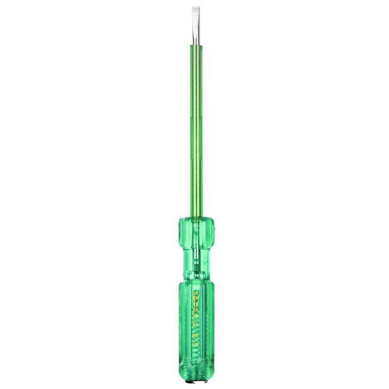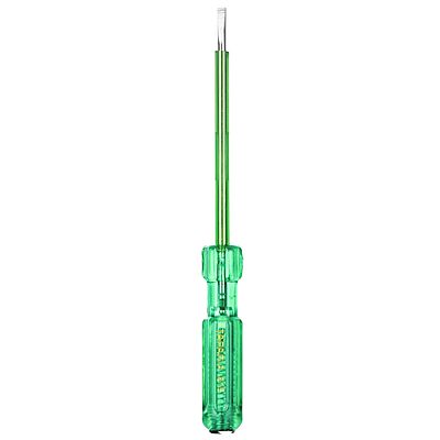 The TAPARIA Line Tester Green Handle 125mm is a compact and reliable voltage tester designed for safe and efficient electrical testing. Its vibrant green cellulose acetate handle provides a distinct and comfortable grip, making it easy to spot in any toolbox. Engineered with a fully insulated high-grade steel blade, this tester ensures safe, shock-proof operation for professional electricians and DIY users alike. The built-in neon indicator gives a clear, visible signal when a live line is detected, enhancing user safety and confidence. Its practical clip design allows for convenient pocket carrying. The 100+5Free BP pack is ideal for bulk users—perfect for contractors, workshops, and retailers seeking both value and quality.