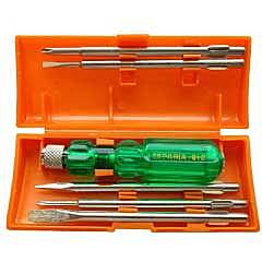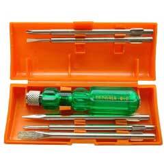 The TAPARIA Screw Driver Set 3Q 802 is engineered for accuracy and convenience, combining five essential screw-driving blades in one compact set. This assortment is excellent for professionals and DIY users working with a variety of fasteners—flat, Philips, and square drive—in electronics, appliances, and household repairs. Made from high-grade steel, each blade is hardened and tempered for durability, while the comfort-grip handle ensures safety and ease of use. Its versatile design makes it a reliable addition to any toolkit.