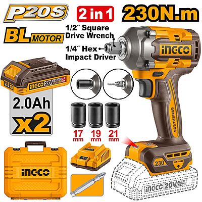 INGCO Lithium-Ion Cordless Impact Driver&Wrench CIWLI20236(20v, 1/2", 230n'm)