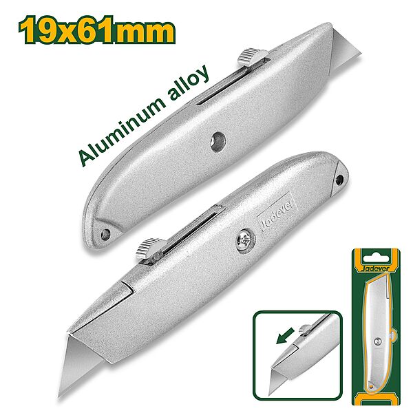 Aluminum alloy body With 1 pcs blade Auto-Lock Length:150mm Blade:61mm(L)x19mm(W)x0.6(T) (JDMK1K61) Packed by sliding card