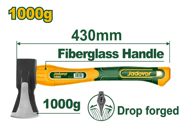 Weight:1000g Drop-forged axe head Drop-forged hammerhead Heat treatment,45# carbon steel Unique design fiberglass handle Packed by label