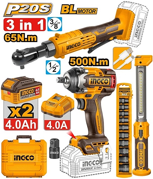 INGCO Cordless Impact 3 Pcs Combo Kit COSLI250981