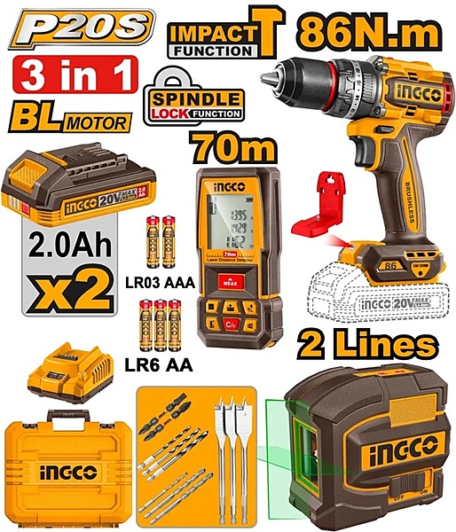 INGCO 3 Pcs Cordless Combo Kit COSLI251001