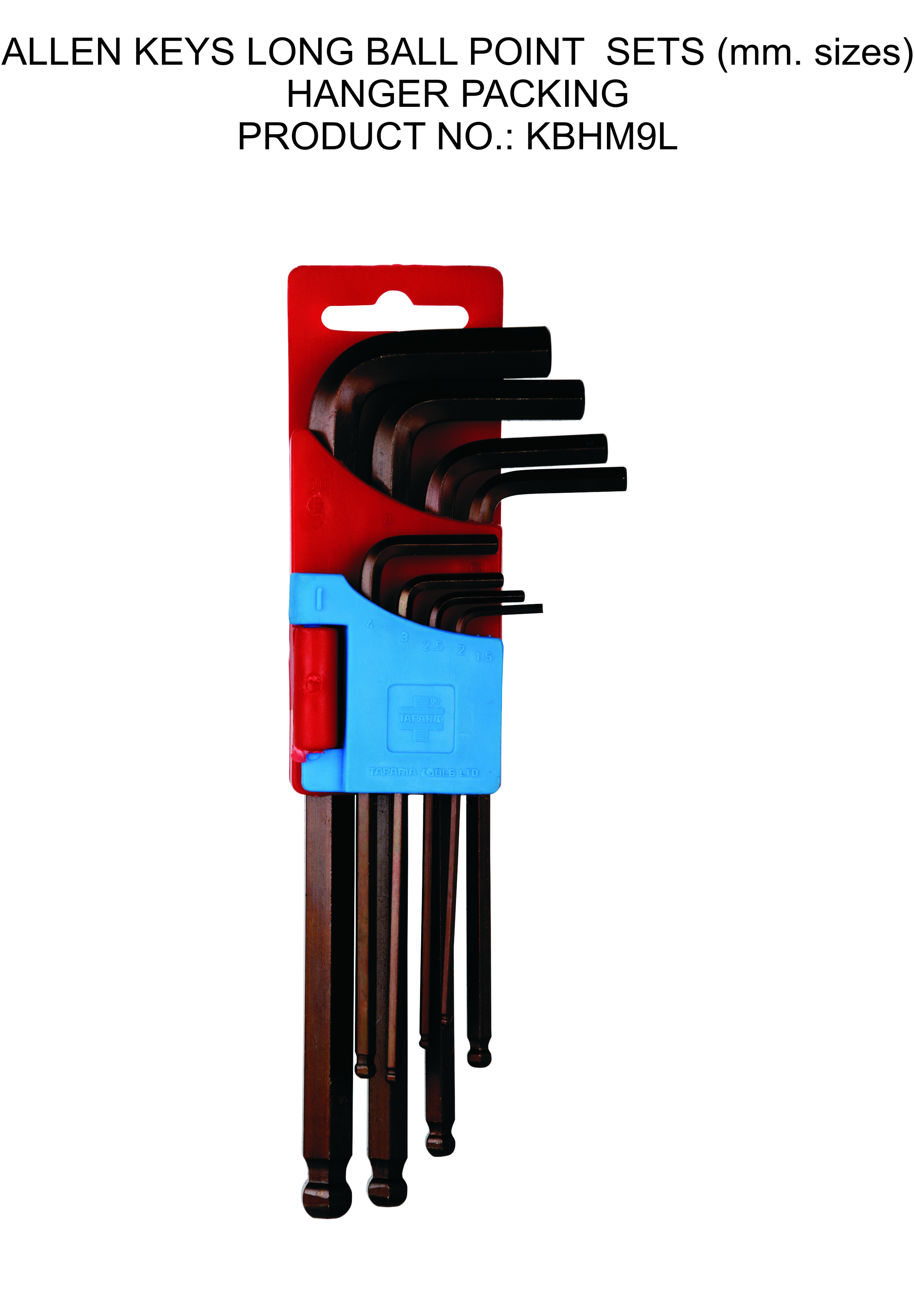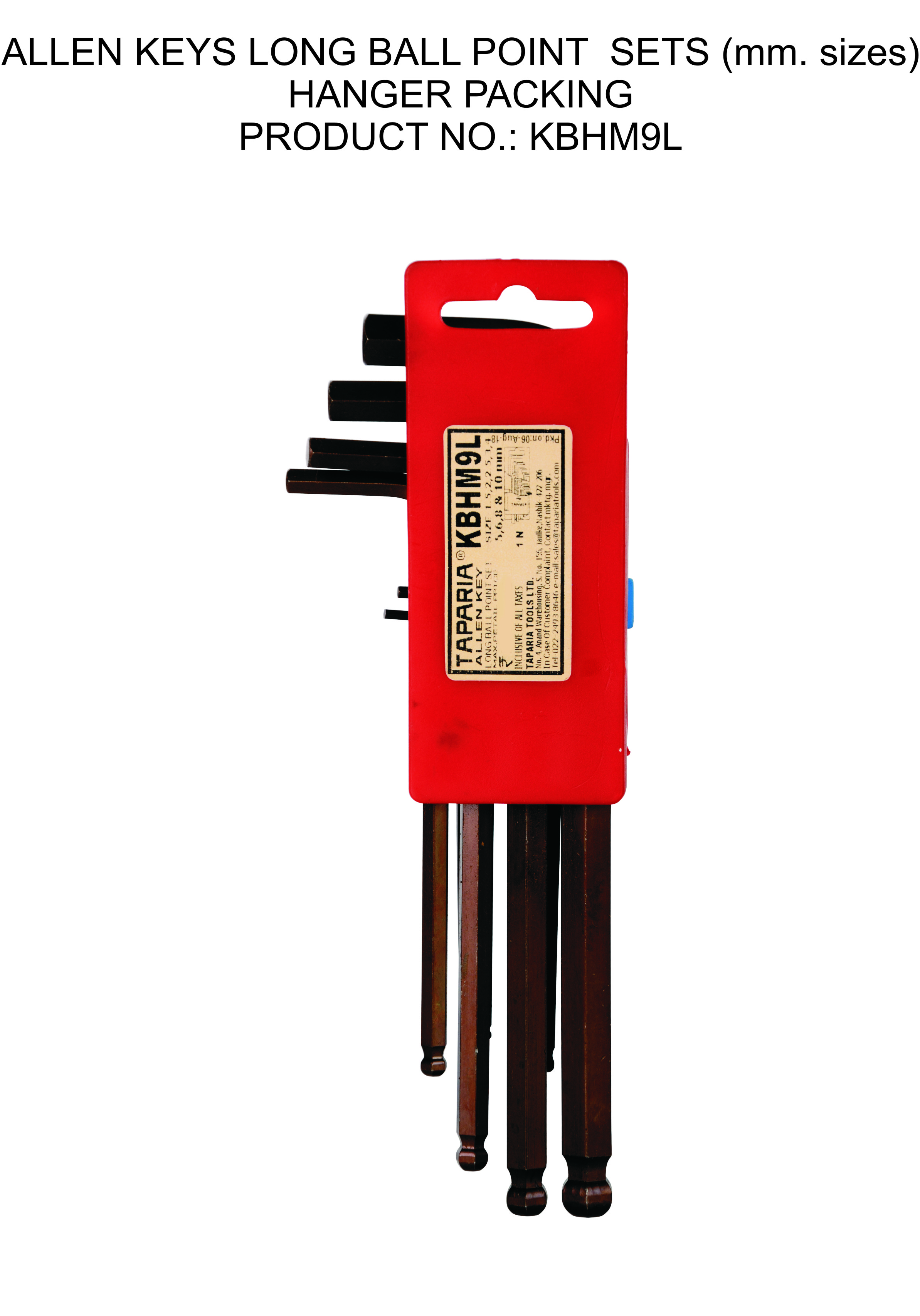 TAPARIA Allen Key Long Ball Point 9 Pcs. Set 1.5,2,2.5,3,4,5,6,8,10mm 28K KBHM 9L HP