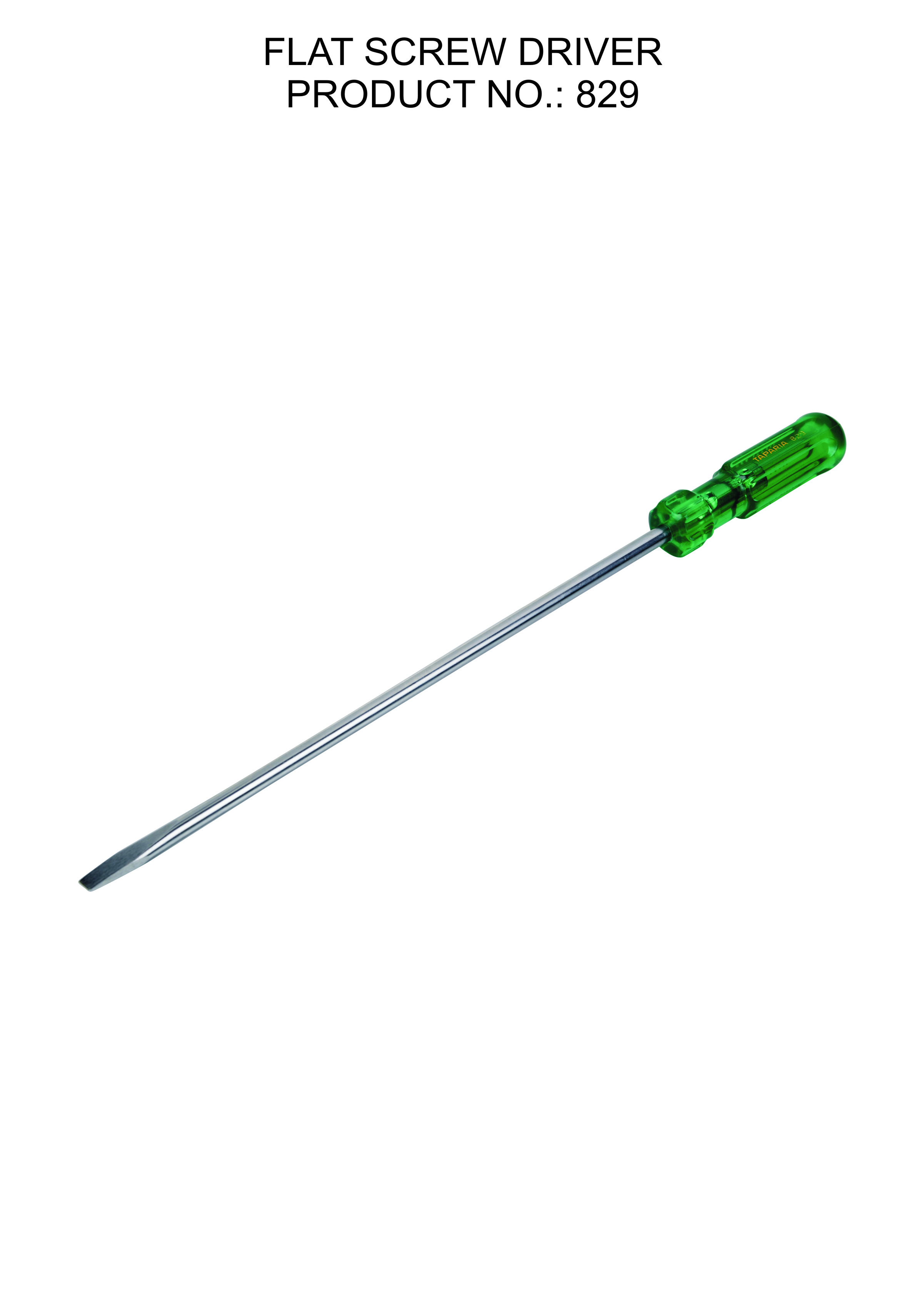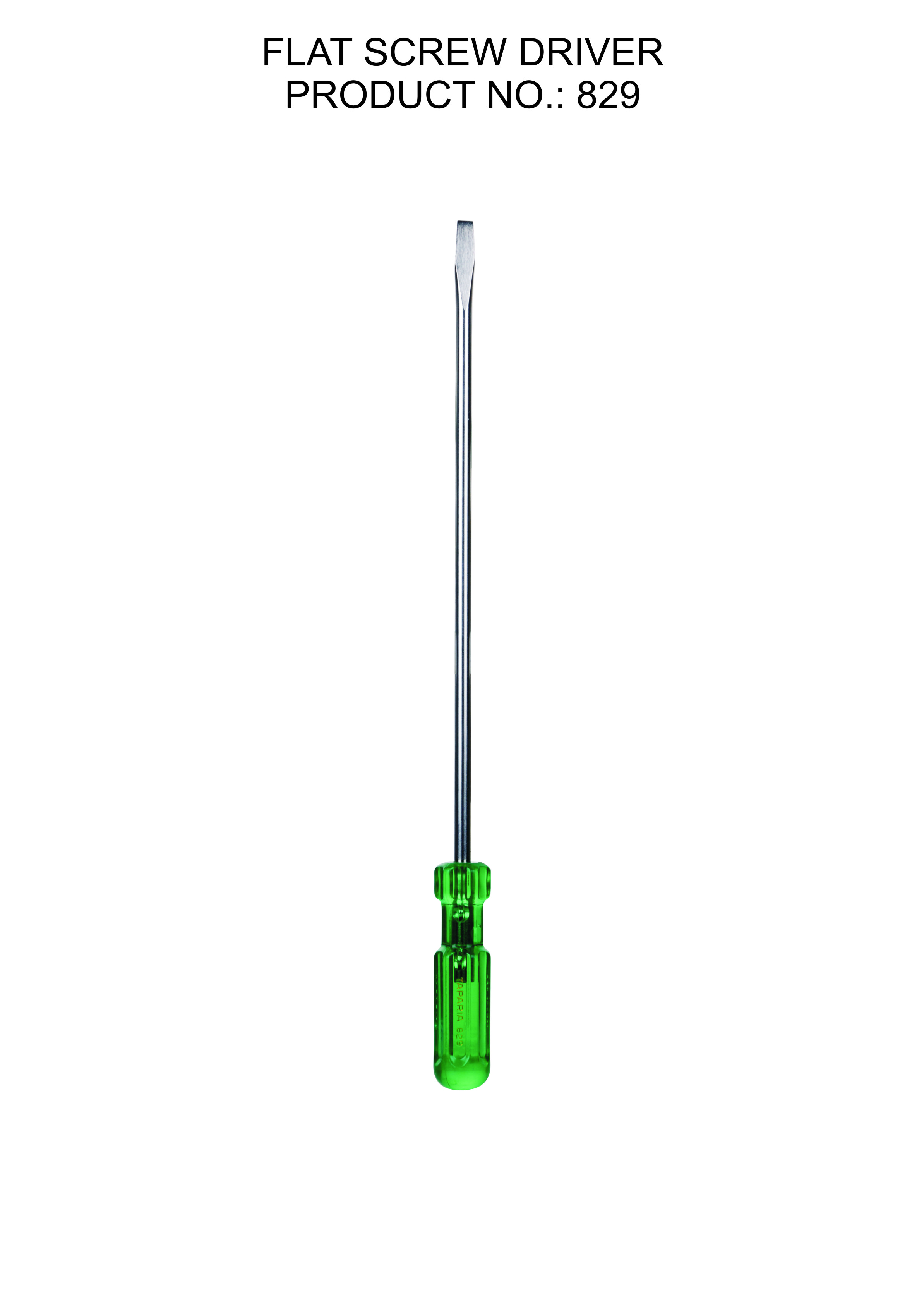 The Taparia 829 Flat Screwdriver (300 mm) is the ultimate heavy-duty slotted tool for maximum reach and torque. With a broad 8 mm tip and an extended 300 mm blade, it's ideal for deep-set screws in industrial machinery, switchboards, power panels, and mechanical repair setups.