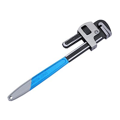 The TAPARIA Pipe Wrench 18" (450mm), Model 8A/1275, is engineered for strength and precision in all your heavy-duty plumbing and pipe work tasks. Its robust Stillson-type design ensures a secure grip on pipes up to 2 inches in diameter, making it an essential tool for plumbers, mechanics, and maintenance professionals. Constructed with a drop-forged high-grade carbon steel jaw and a sturdy cast iron handle, this wrench is made to withstand tough jobs and deliver consistent clamping force. The machined, hardened teeth guarantee a firm grip without slippage or pipe damage, while the ergonomically shaped handle offers comfort during prolonged use.