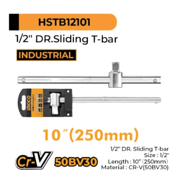 1/2"DR. Sliding T-Bar Size:1/2" Length:10"(250mm) Material:Cr-V(50BV30) Heat treatment Chromed plated Packed by plastic hanger