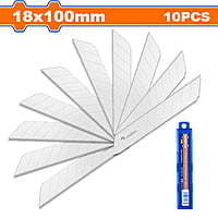 The blades measure 18mm in width and 100mm in length, making them compatible with most standard snap-off utility knives. They come neatly packed in a durable plastic box for easy storage and safe transport—ideal for workshop, construction site, or home improvement use.