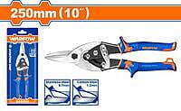 Unique design two tone soft handle Aviation snip (Straight) Length:250mm(10") Max.cutting thicness: Carbon steel ≤1.2mm Stainless steel ≤0.7mm Packed by plastic bag