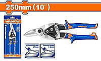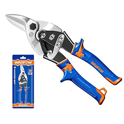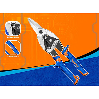Unique design two tone soft handle Aviation snip (Right) Length:250mm(10") Max.cutting thicness: Carbon steel ≤1.2mm Stainless steel ≤0.7mm Packed by plastic bag