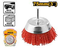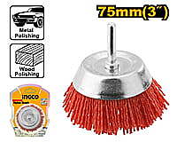 Dia: 75mm, 3" Shank dia: 1/4" Wire dia: 1.2mm Wire length: 23mm RPM: 4500r/min Apply on: roughening, structuring, descaling/paint stripping Suitable for: Steel, Cast steel, Stainless steel, Non-ferrous metal, Aluminium, Soft wood, Hard wood Packed by double blister
