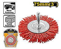 Dia: 75mm, 3" Shank dia: 1/4" Wire dia: 1.2mm Wire length: 10mm RPM: 4500r/min Apply on: roughening, structuring, descaling/paint stripping Suitable for: Steel, Cast steel, Stainless steel, Non-ferrous metal, Aluminium, Soft wood, Hard wood Packed by double blister