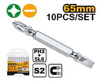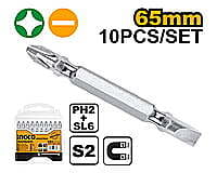 PH2+SL6.0,65mm,10pcs/set S2 industrial steel double end bit Nickle plated magnetic Packed by plastic box
