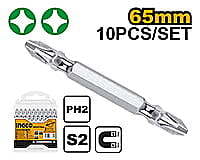 PH2, Double end bits, NICKLE PLATED MEGNETIC 65mm,10pcs/set S2 industrial steel Packed by plastic box
